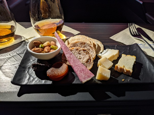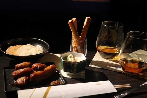 ウイスキーをひたすら楽しんでいると、CAさんが美味しいおつまみをどんどん持ってきてくれました。