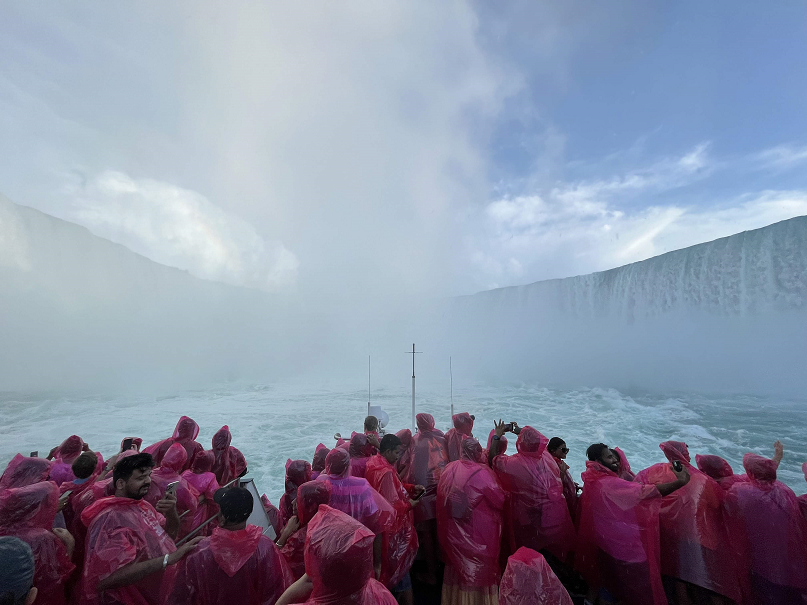 カナダ滝に近づくにつれてとてつもない轟音と水しぶきが船を包み込みます。