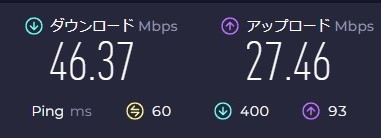 休日午前中の混雑していない時間帯でもありますが、下り45 Mbps以上の速度が出ます。